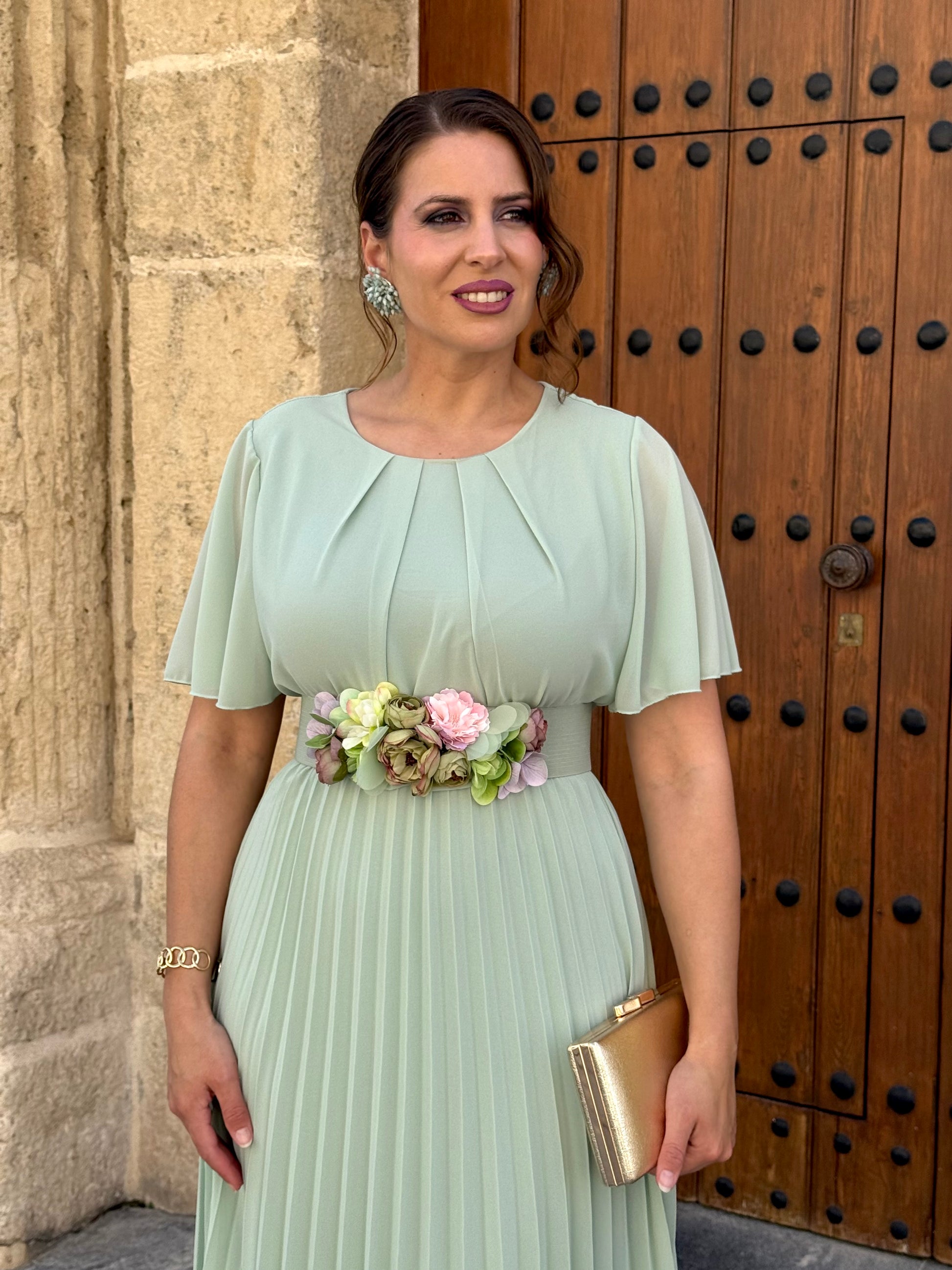 Cinturón Floral Verde Agua