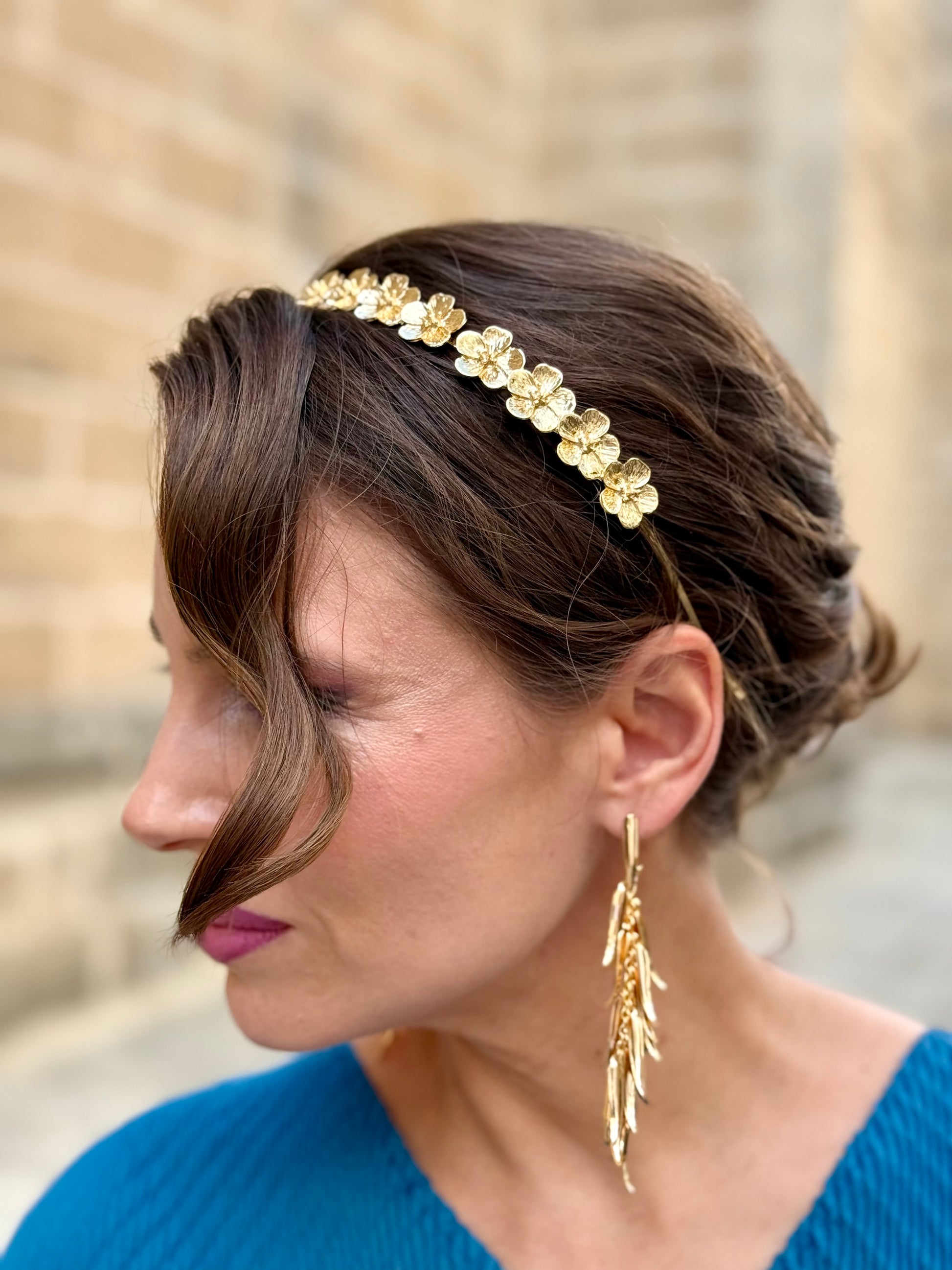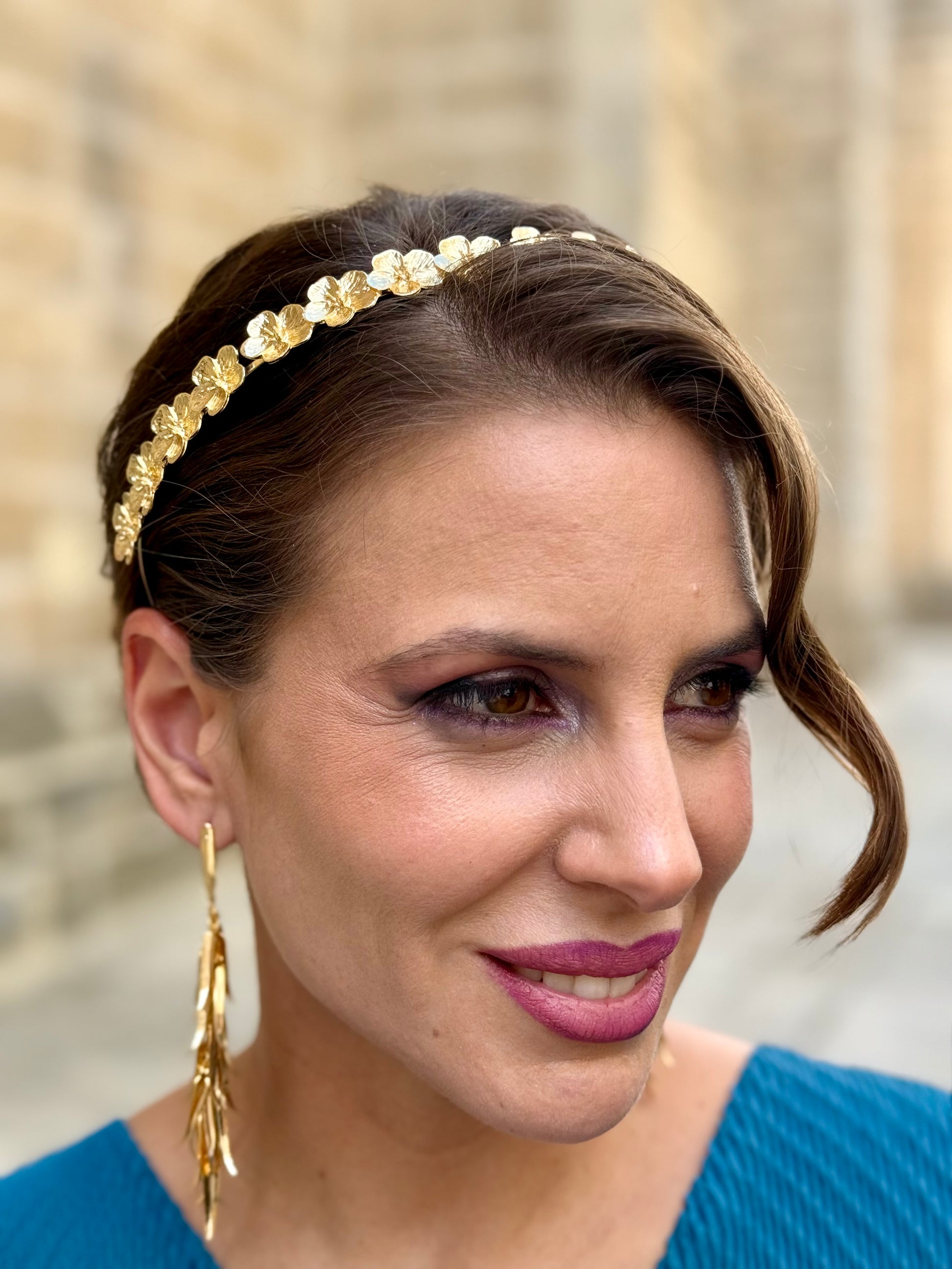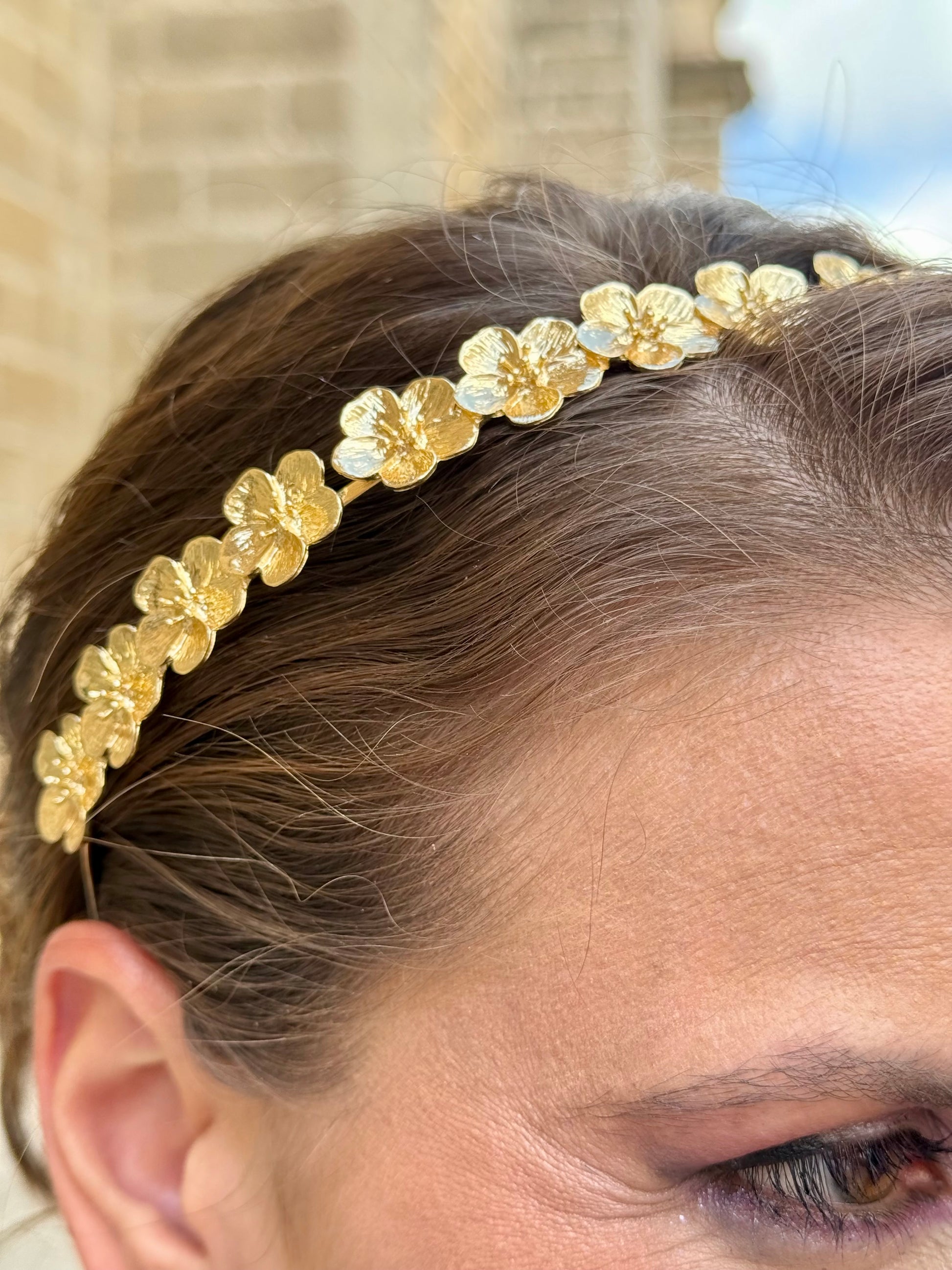 Diadema Metálica Flor Dorada